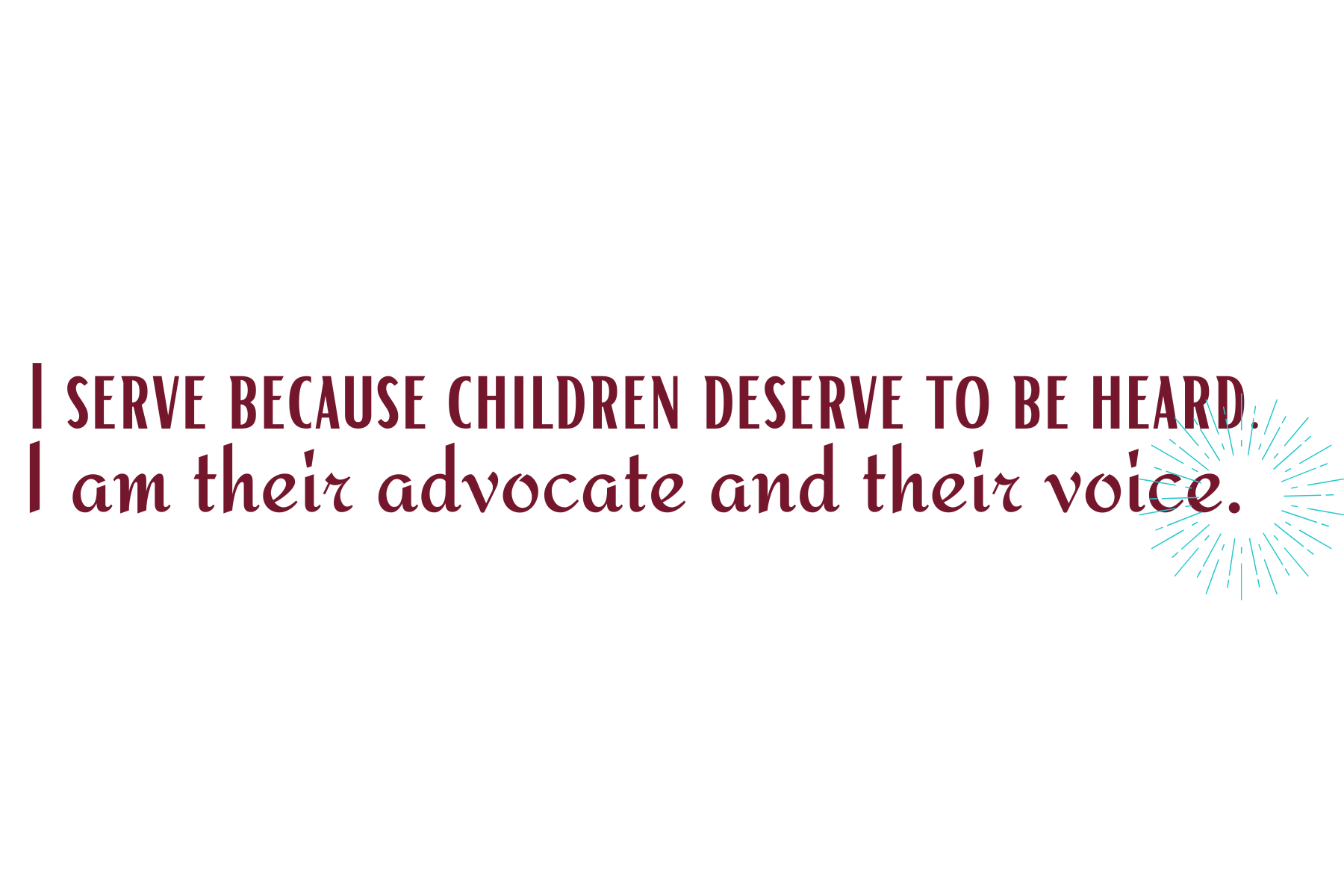 - I serve because children deserve to be heard. I am their advocate and their voice.