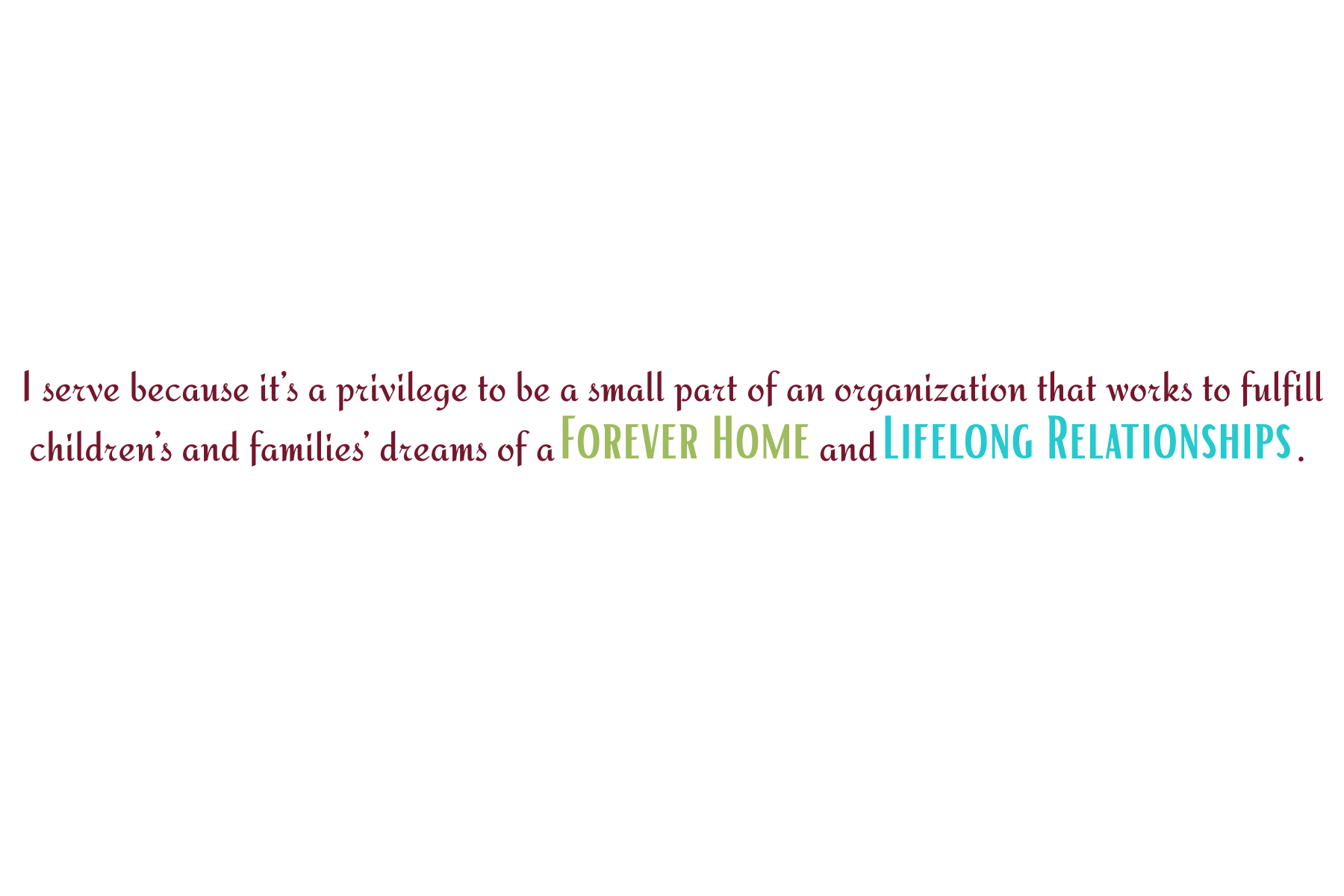 - I serve because it’s a privilege to be a small part of an organization that works to fulfill children’s and families’ dreams of a forever home and lifelong relationships.